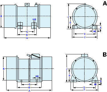 XVMA series vibration motor is in biaxial stretching at each end of the rotor shaft installed a set of adjustable eccentric block, using the centrifugal force produced by the rotation of eccentric block vibration force.Vibration motor vibration force is big, low energy consumption, low noise, long service life.It USES in the bunker, hopper, chute silo wall vibration, or self synchronous linear vibrating screen, vibrating feeder, vibrating conveyor, etc all kinds of mechanical vibration excitation source, is metallurgy, mining, coal, building materials, chemical industry and other departments of ideal equipment, has a wide application range.