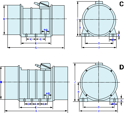 Parameters| 型號 | 振次r.p.m | 最大激振力 | 功率 | 電流 | 功率因數(shù) | 效率 | 起動電流倍數(shù) | 重量 | 圖號 | 外型及安裝尺寸 (mm) | 緊固螺栓 | ||||||||||