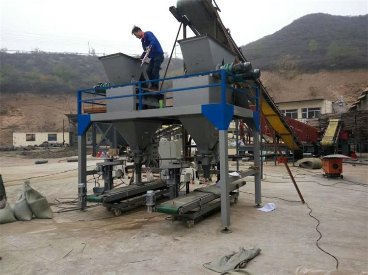 Material join the weighing hopper by feeding mechanism (pneumatic valve), the controller receives the weight of sensor signal, according to preset procedure value control, fast at the beginning (fast plus, add, slow and at the same time) feeding;When the weight (target - coarse measurement value or higher), stop quickly add signal output, into the medium (add, slow and at the same time) feed;When the weight (target - fine measurement value or higher), stop adding signal output, into slow (slow) feeding;When weight (target - impulse value or higher), stop slowly add signal output, feeding door close fully, fixed value weighing.Clip bag after signal input, weighing hopper discharge door open, when the zero value or less weight, weighing hopper discharge door shut down automatically, automatically loosen falling into a conveyor belt and bag be sent to the sewing machine after FengBao into the next process, at the same time into the next control loop controller.