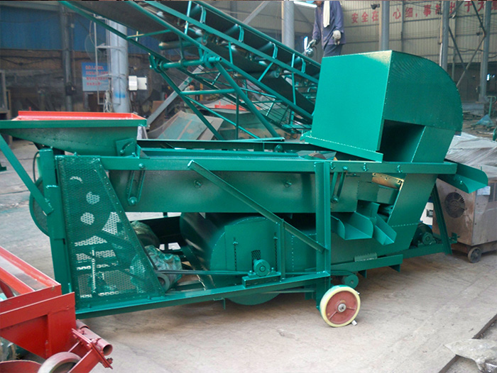 玉米霉變清理機(jī)本機(jī)分為三層篩網(wǎng),可以將物料中的雜質(zhì)通通清理出 去。第一層篩網(wǎng)孔徑比物料大,比物料大的雜質(zhì)都留在了第一層篩網(wǎng)上,隨著篩網(wǎng)的振動(dòng)從出料口出來(lái),物料緊接著進(jìn)入第二層 篩網(wǎng),第二層篩網(wǎng)孔徑和物料基本相同,比物料小的雜質(zhì)進(jìn)入第三層篩網(wǎng),然后從出料口出來(lái),接著物料進(jìn)入到風(fēng)選過(guò)程中,風(fēng) 選過(guò)程中比物料輕的雜質(zhì)被風(fēng)機(jī)吸出來(lái),然后將物料由拋糧帶進(jìn)行拋出。